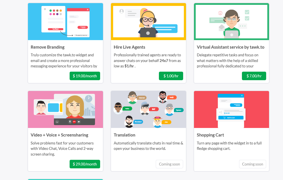 If you need these paid solutions keep in mind Tawk.to solutions way cheaper than competitors.