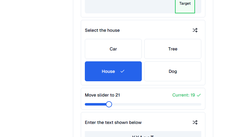 - Two-Step Check Logic: Math question and a draggable element to confirm real activity.