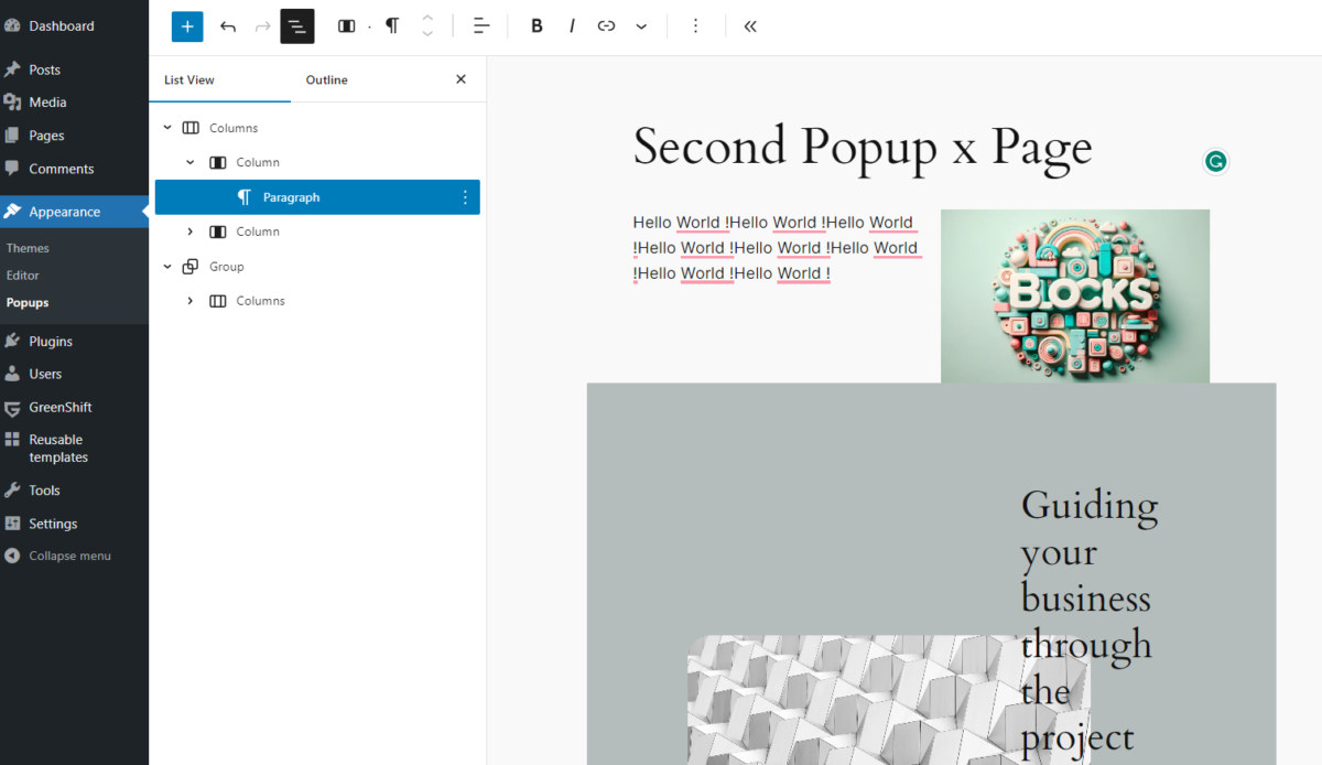 Block Editor Popups, Custom Popups, Shortcode