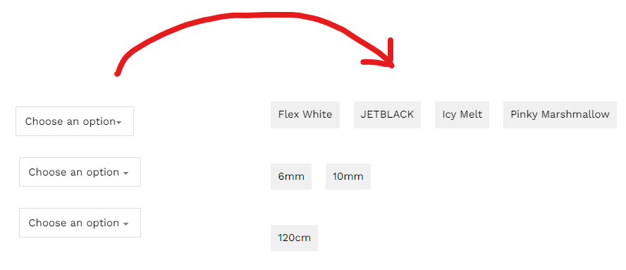 * Replaces WooCommerce variation dropdowns with buttons, and adds JavaScript to handle button clicks for variation selection.