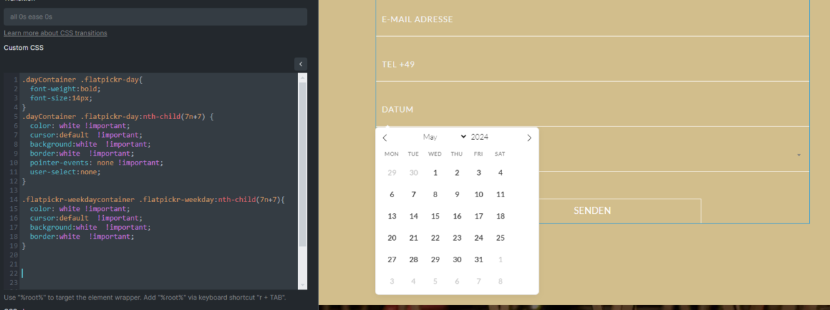 I didn’t wrap with %root% but if you have multiple forms same page wrap the CSS .classes with %root%.