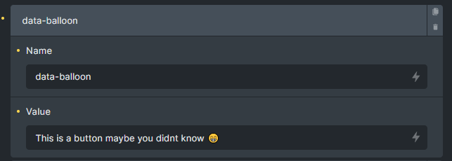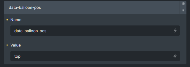 just add 2 attributes one is data-balloon other is data-balloon-pos