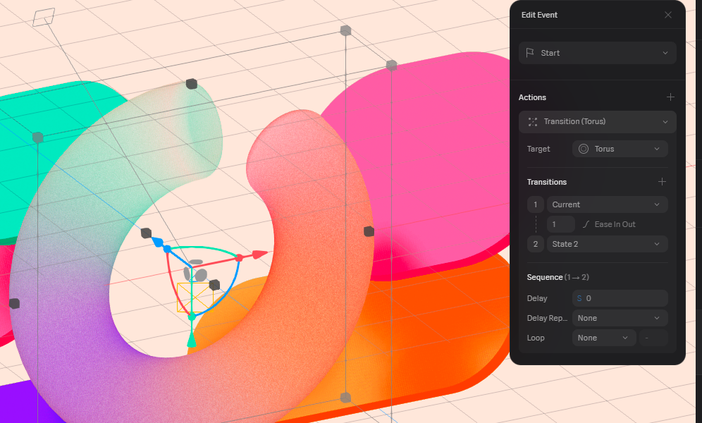 Every object can have events. Events are triggers for your states. You can put lots of different type of states. Like entrance animation, auto loops, easing, sound, video, switch camera, create or destroy objects and combination of all. Limitless possibilities. Limitless interactions.