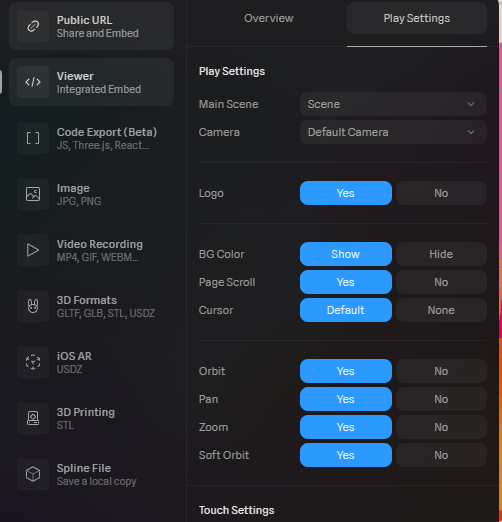 And you have to use the spline URL to use complete features. You can not make advance states events and download as code export. it doesn’t work. code exports doesn’t even support most of the materials you cant even have models will colors. I have made lots of tests with it it is not even Beta it is Alpha at the moment. Keep it in mind.